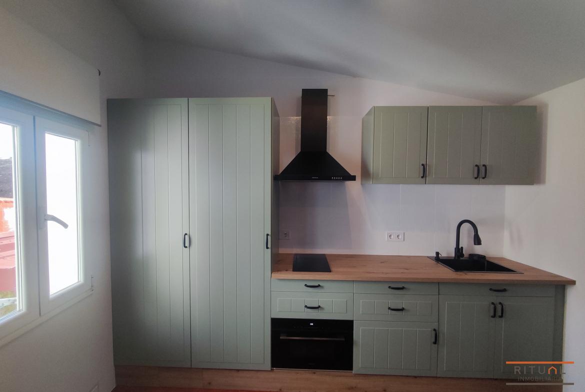 Cuenta con cocina abierta al salón,  tres dormitorios, uno de ellos  ideal como vestidor  o zona de trabajo y un cuarto de baño completo con bañera.